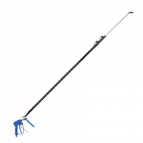 HERMES Chemie-Teleskoplanze aus Carbon zum Auftragen von Reinigungsmitteln und Bioziden auf die Fassade. Düsenkopf um 180° drehbar mit Venturi-Düse sowie chemiebeständigem Ventil und Dichtsatz. Inklusive drehgelagerter Chemiepistole (bis max. 50 bar). Geprüft und geeignet für alle gängigen HERMES Reinigungsmittel.